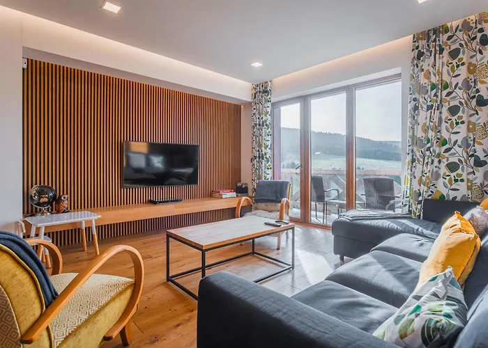 O apartamento Apartmán Švícárek Apartamento oferece kitchenette, bem como quartos com varanda, sofá, equipamentos para chá e café. A propriedade está a 3.8 km de Percurso Estival de Tobogã de Oberwiesenthal e 2.8 km de Montanhas Fichtel.